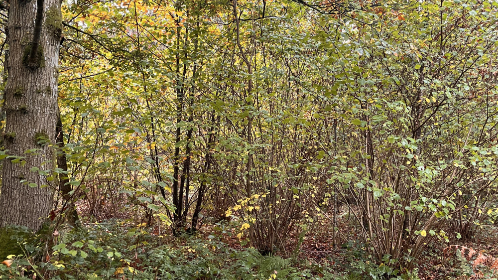 There is great opportunity to carry on the coppice management of the hazel stools.