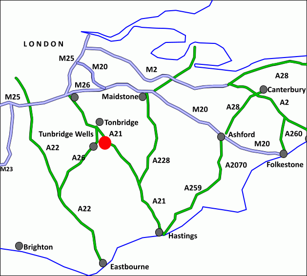 3. If heading south bound take the exit off the A21 signed