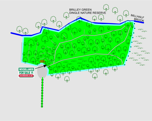 Delightful broadleaf woodland in very quiet, peaceful surroundings, flanked on one side by the Millhalf Brook and Brilley Green Dingle Nature reserve and by rolling green fields and woodland on the remaining sides. Brilley Wood is looking for someone to continue the careful management which has resulted in its present wonderful biodiverse shape and inhabitants, namely rare creatures like our native Dormouse, newts and crested newts, many species of birds, some quite unusual such as the pied flycatcher, and great variety of ground flora including many ancient woodland indicators such as oxalis or wood sorrel, woodland anemones, and carpets of native bluebells in the spring.
