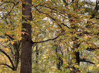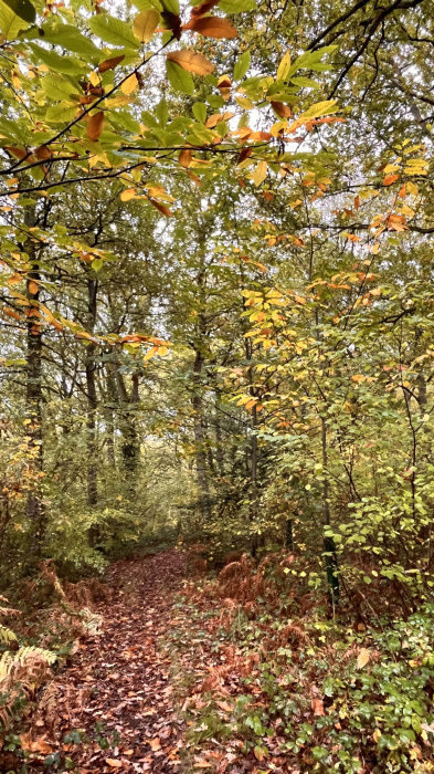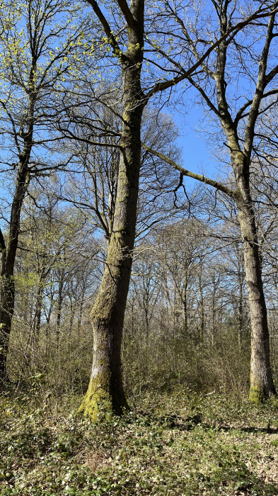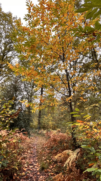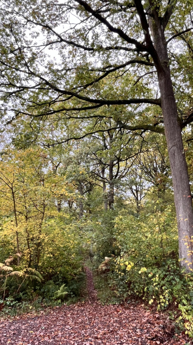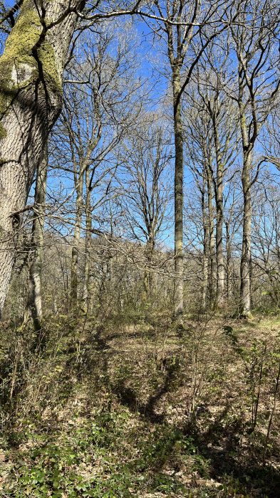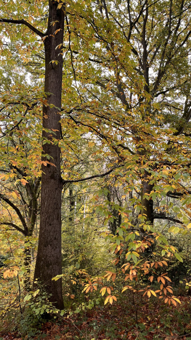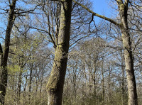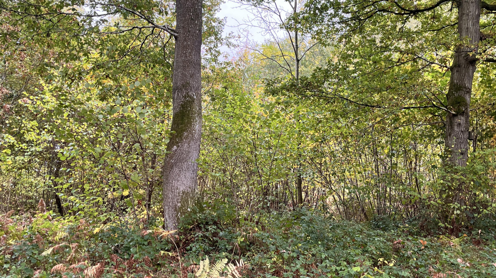 Lovely mix of native broadleaf here, with majority oak but also some lovely specimens of sweet chestnut, one or two fabulous beech as well as birch, cherry, some alder and quite a quantity of hazel at understory, much of which has been managed over several years as coppice. Also at understory can be found holly and hawthorn, field maple and sycamore, many interwound with copious amount of honeysuckle.