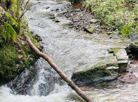 The brook which forms the northern boundary of the larger woodland Kiln Ground Wood, drops down several shallow falls on its journey eastwards, banked by big stone slabs in places which create wide, shallow pools where the white clawed crayfish (or Austropotamobius pallipes, to give it its proper name!) have happily found suitable habitat; quite a rarity. There are many wildflowers down here in the spring and it is an idyllic corner of the woodland to sit and enjoy nature in its fine, quiet form.