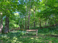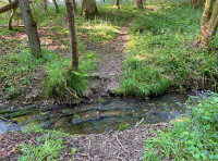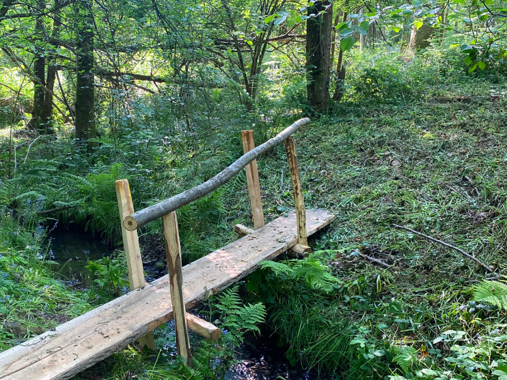 There is a rustic bench in a small private clearing rich with bluebells in the spring. A footbridge has been installed to cross the stream and will allow a new owner to easily access the west side of the wood. The stream is named on maps as ‘Sweet Bourne’. It is understood that the ‘sweet’ refers to the area's natural beauty and tranquillity. There is a good all year-round access to Crossing Wood via a shared stoned track and a place for a new owner to park within the wood itself.
