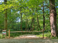 - Walk under the gate and up the track past the telecom mast and down the stoned track approx. 400 meters. Take the turn to the right (following the stoned track) and continue approx. 250 meters. The ride stop entrance to Crossing Wood is on the left-hand side with its boundaries marked in BLUE.