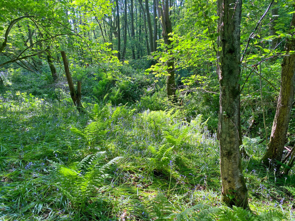 - Ancient woodland indicators including bluebells, yellow archangel, red campion and hard ferns.