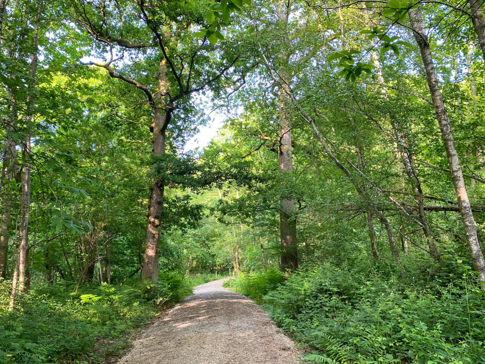 The stoned track leading to the entrance to the wood