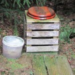 Many people find that if they are visiting their wood a lot, and particularly if they are camping at all, it is worth making an "earth closet". This is basically a hole in the ground with a seat over it. If you have a container of old ashes from the campfire you can use this instead of a flush! A sight-screen, which can just be some big piles of brash, is essential, or you can secrete it behind a handy rhododendron. Other people just keep a spade and roll of loo paper available and to hand. In the long term, there are more sophisticated systems but the majority depend on one of these basic plans.
