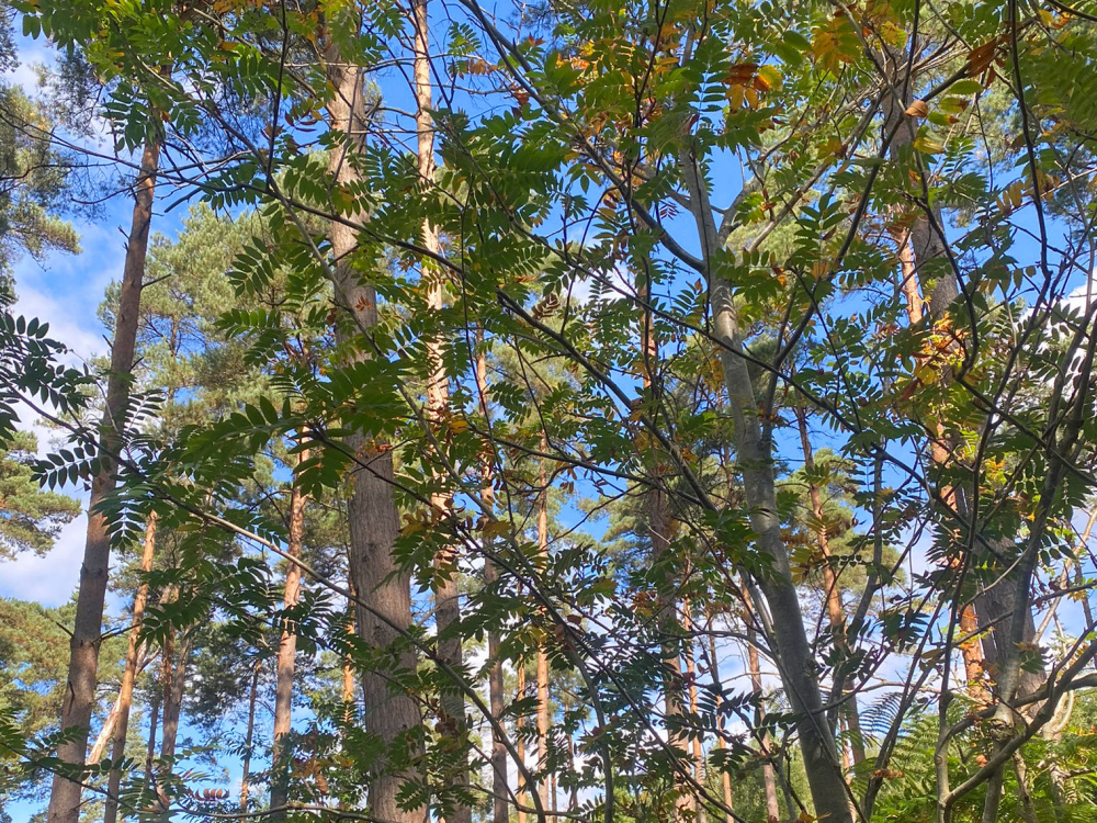Notch Wood has 3 very distinct ‘compartments’ – the northwest being a young oak plantation (circa 2015). Scots pine and birch is naturally regenerating in this area with heather on the forest floor. The northeast area of the wood features Douglas fir. The area immediately below the internal private track is mature Scots pine with birch and bracken understorey. Furthest to the south (beyond the old ditch / wood bank) is oak, chestnut, birch. Also seen in the woodland - mountain ash, holly, cherry and hazel.
