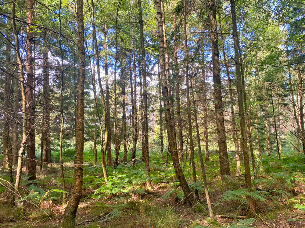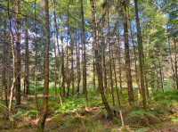 - A rich mix of conifers and broadleaves in varying stages of growth.